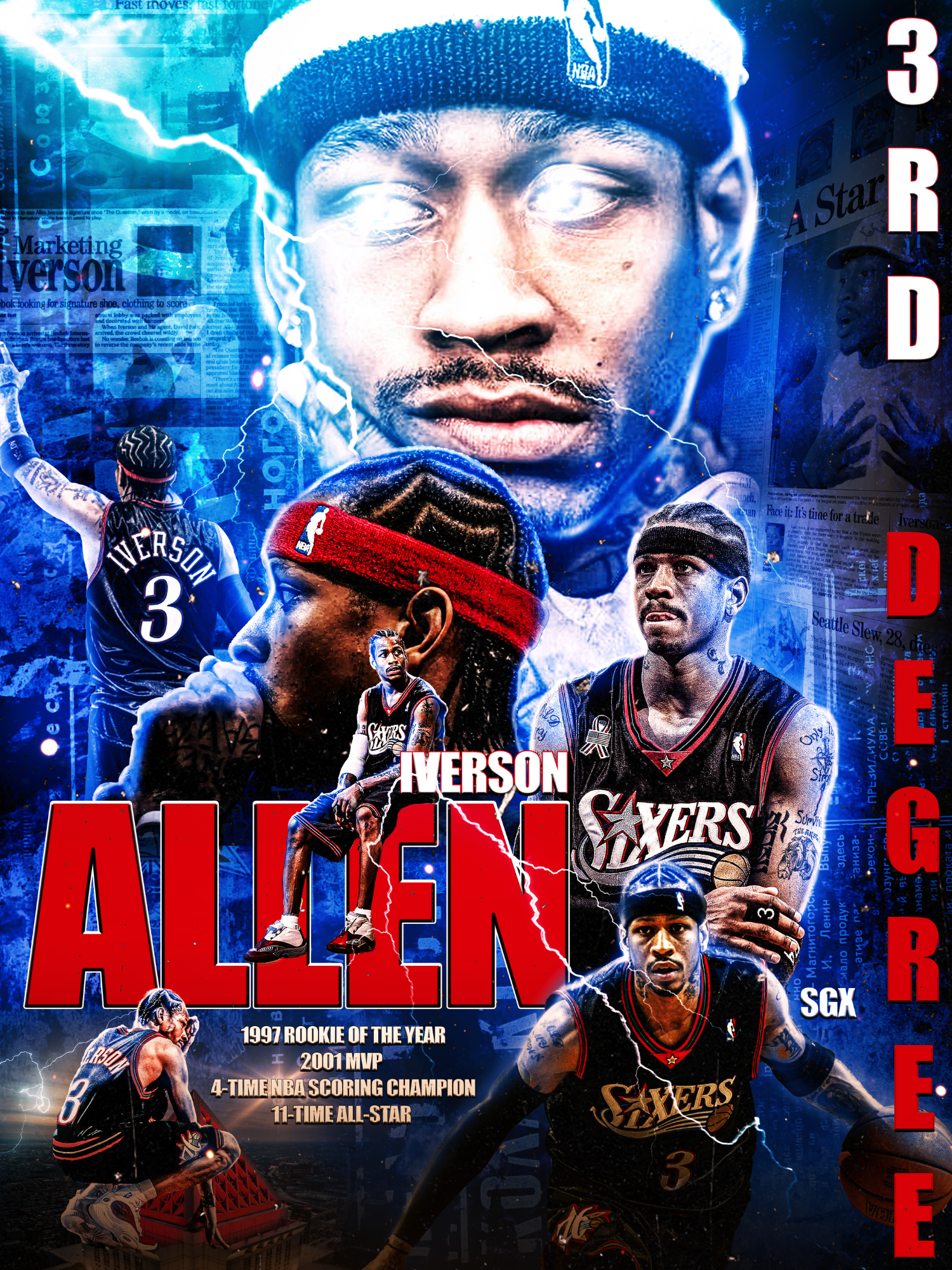 ALLEN IVERSON DESIGN Inspired by the legendary crossover king, this piece captures the essence of Allen Iverson's revolutionary impact on basketball culture. The 3rd Degree design delivers sharp, angular aesthetics that mirror Iverson's aggressive playing style and fearless attitude. Crafted with meticulous attention to detail, this design celebrates one of the game's most iconic figures and his indelible mark on both the court and street fashion. Perfect for fans who appreciate authentic basketball heritage and bold, statement-making style.